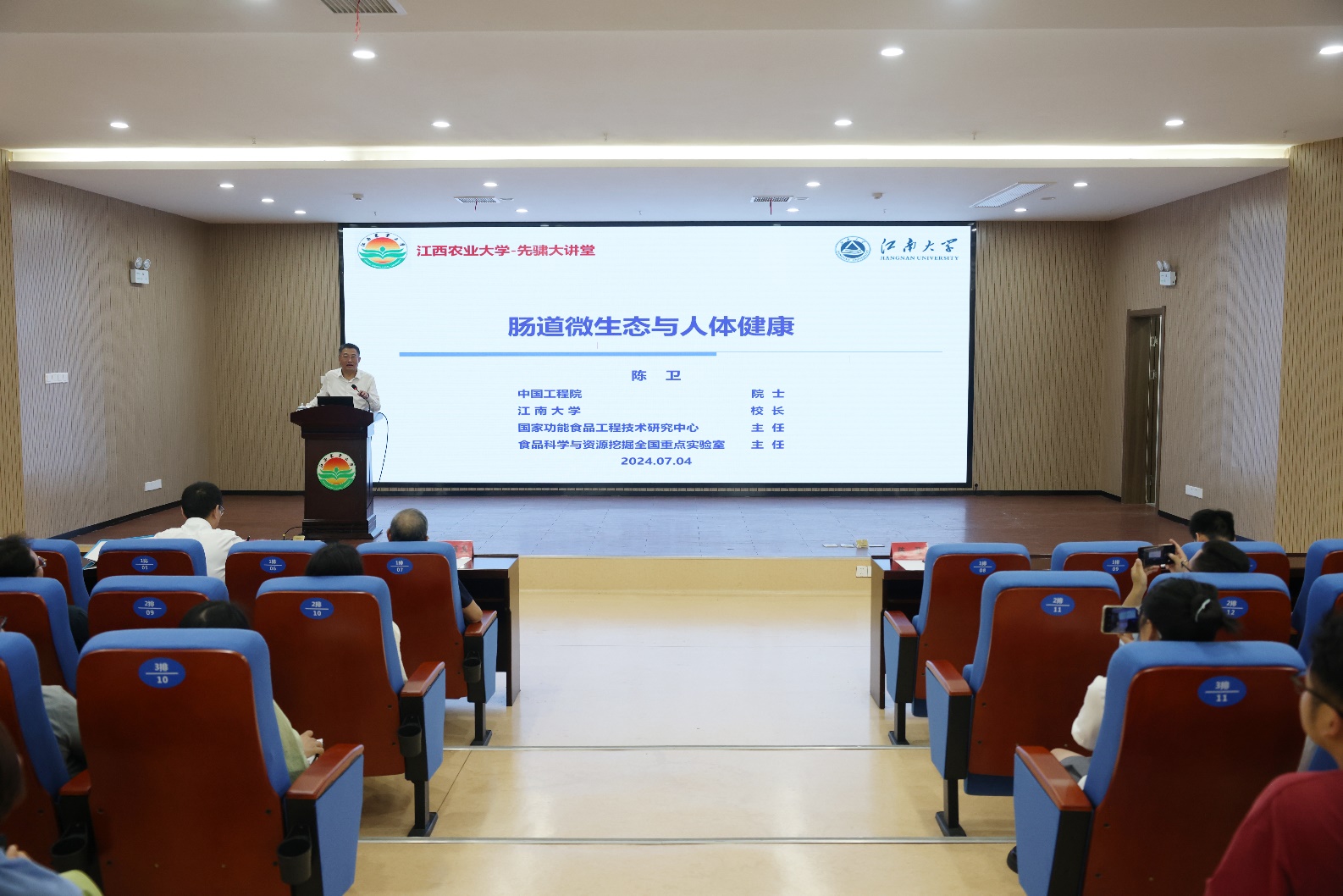 7月4日下午,學校第十二期“先骕大講壇”在學校逸夫圖書館南一樓報告廳精彩開講。本期講壇邀請了中國工程院院士、江南大學黨委副書記、校長陳衛(wèi)做專題報告,中國科學院院士、校長魏輔文出席并主持報告會,副校長王文君出席,學校160余名師生代表參加。