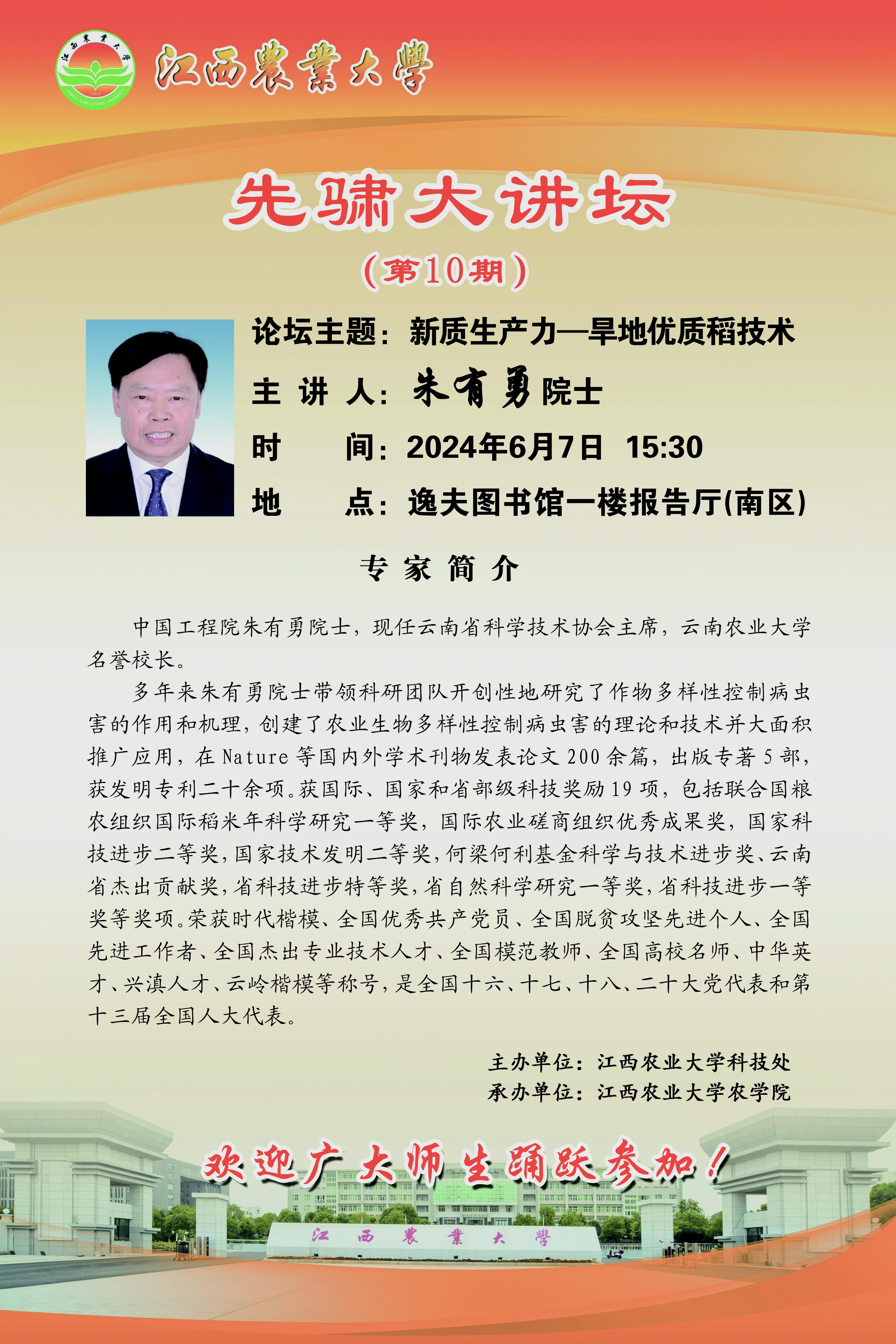 先骕大講壇(第10期):新質生產力-旱地優質稻技術