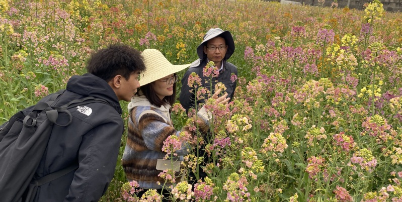 梁梅學術報告的題目是《觀賞植物花斑多樣性形成機制:從“零散點”到“縱向條紋”的演化》,報告以猴面花為基礎材料,通過對其花瓣的均一著色以及各種花色斑紋演化過程的研究,提出了觀賞植物花斑形成機制及調控方法,并結合數學模擬,實現花色的分子設計。報告結束后,梁梅前往我校彩色油菜花科研基地進行了調研,并與農學院師生就油菜花花色形成機制及調控方法進行交流和探討。