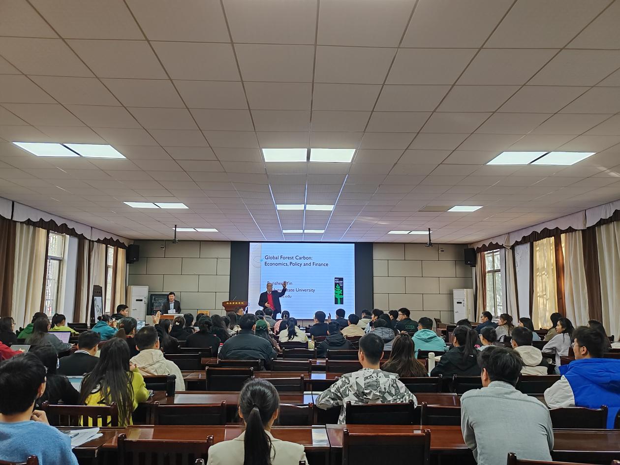 11月20日,為拓寬全院師生的國際化視野和提升高水平論文寫作能力,受學院朱述斌教授邀請,美國密歇根州立大學教授、國際知名學術期刊《Forest Policy and Economics》前主編尹潤生(Runsheng Yin)做客“夢月湖”大講壇暨贛鄱經濟管理系列講座,為全院100余名師生授課。
