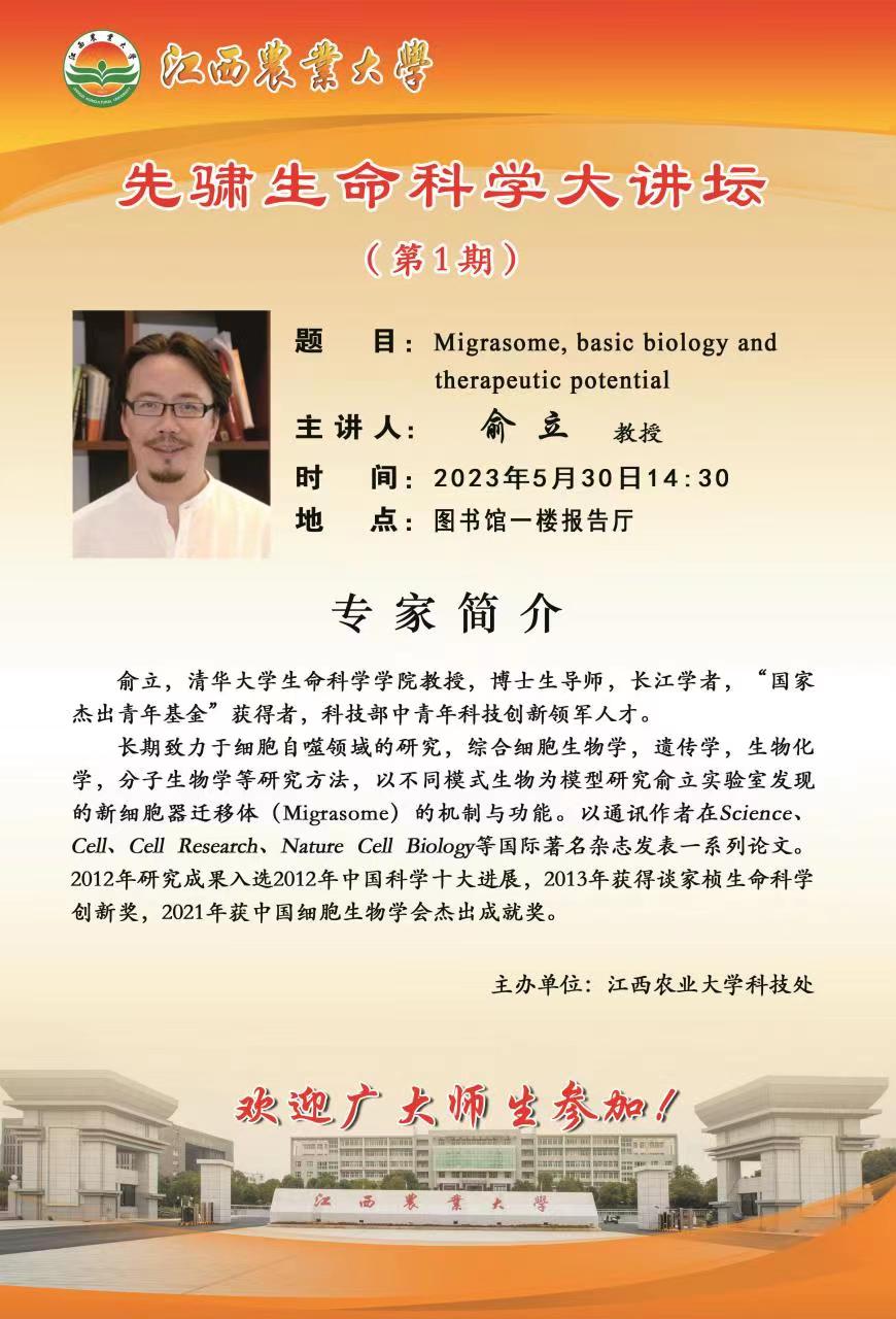 先骕生命科學大講壇: Migrasome, basic biology and therapeutic potential