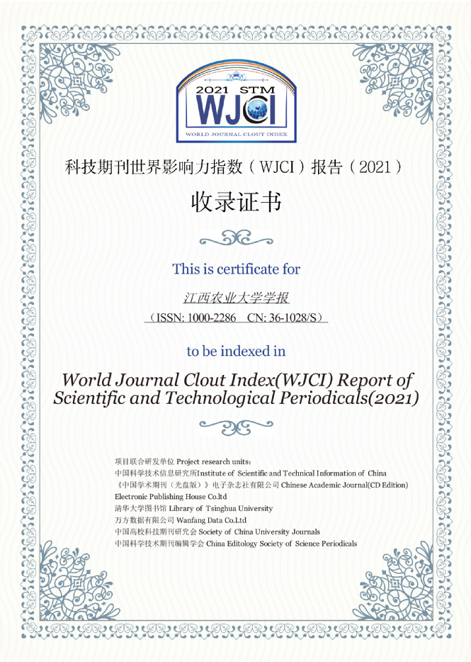 近日,從中國(guó)知網(wǎng)獲悉,我?!督鬓r(nóng)業(yè)大學(xué)學(xué)報(bào)》再次入選《科技期刊世界影響力指數(shù)(WJCI)報(bào)告》(2021),這是學(xué)報(bào)入選第一屆報(bào)告(2020)來(lái)源期刊后再次入選。2021年《江西農(nóng)業(yè)大學(xué)學(xué)報(bào)》總被引頻次1 248,影響因子為0.717,WJCI為1.381, WJCI的“農(nóng)業(yè)科學(xué)綜合”學(xué)科排名為58(全球共入選134種期刊),位列Q2區(qū)。