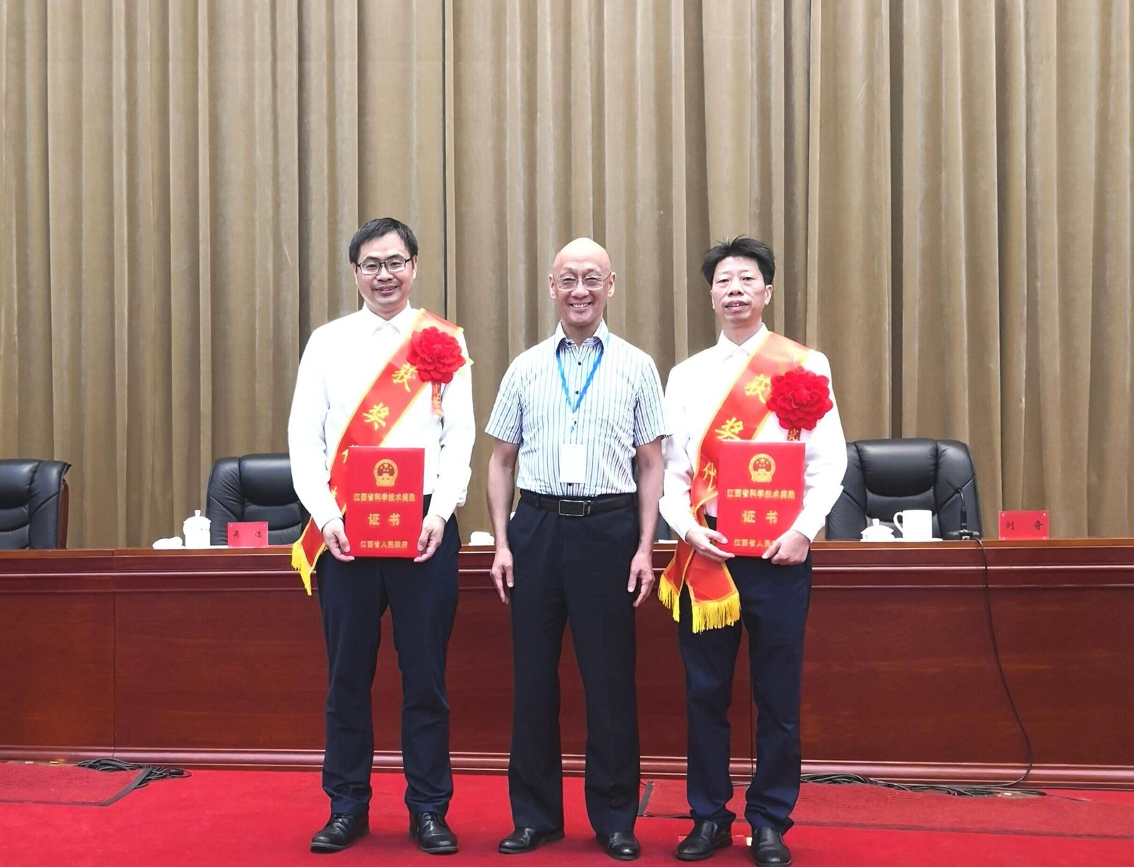 2020年度,我校共獲5項(xiàng)科技成果獎(jiǎng)勵(lì)。其中,科技處處長(zhǎng)游金明教授牽頭主持完成的項(xiàng)目“仔豬腸道屏障功能及機(jī)體免疫調(diào)控關(guān)鍵技術(shù)研發(fā)與應(yīng)用”、林學(xué)院副院長(zhǎng)陳伏生教授牽頭主持完成的項(xiàng)目“丘陵山區(qū)杉竹林地力提升與高產(chǎn)高效高值協(xié)同培育技術(shù)集成及示范”均榮獲江西省科技進(jìn)步獎(jiǎng)一等獎(jiǎng);我校作為參與單位完成的科技成果分別獲科技進(jìn)步獎(jiǎng)三等獎(jiǎng)2項(xiàng)、自然科學(xué)獎(jiǎng)三等獎(jiǎng)1項(xiàng)。江西省科技進(jìn)步獎(jiǎng)一等獎(jiǎng)獲得者游金明和陳伏生兩位教授作為獲獎(jiǎng)代表接受省領(lǐng)導(dǎo)和中科院院士頒獎(jiǎng)。