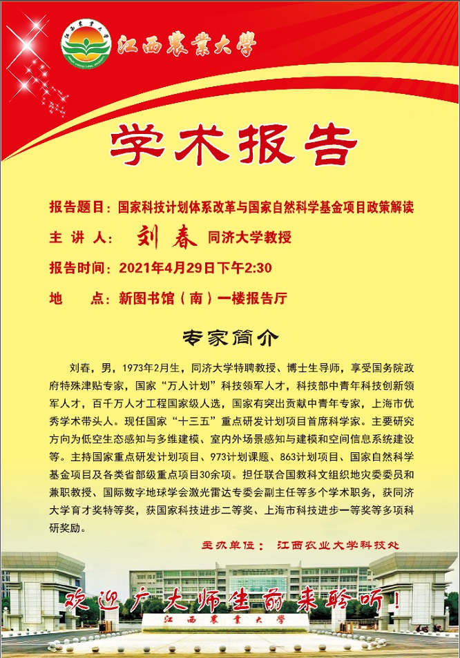 學術報告預告:國家科技計劃體系改革與國家自然科學基金項目政策解讀