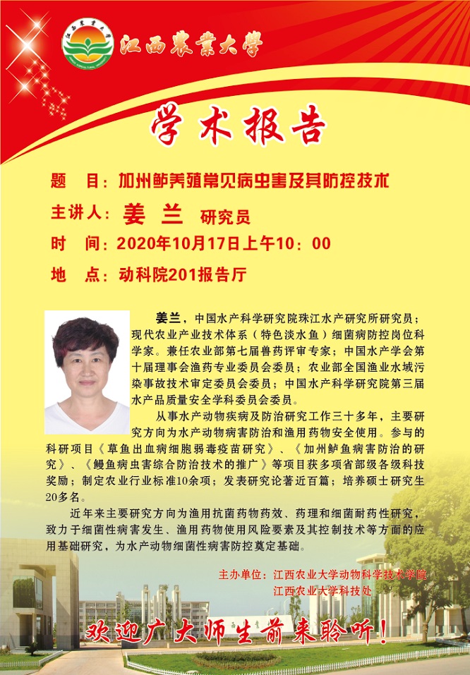 下一條:學術報告預告:水產動物抗菌藥藥理學及臨床安全合理應用