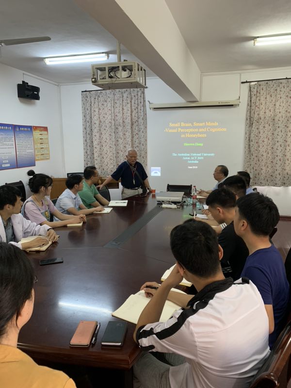 5月31日至6月3日,著名蜜蜂行為學生物學家,我校特聘教授,澳大利亞國立大學張少吾教授應邀到蜜蜂研究所訪問。6月2日上午,張少吾教授在蜜蜂研究所作了題為《Small brain, smart minds: visual perception and cogniton in honeybees》的學術報告,副校長曾志將教授主持了學術報告會。報告內容豐富,講授深入淺出,開闊了師生的視野。