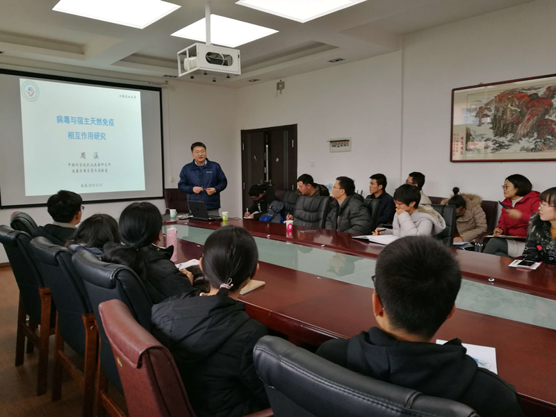 12月13日下午,中科院武漢病毒所病毒學(xué)國(guó)家重點(diǎn)實(shí)驗(yàn)室副主任、國(guó)家優(yōu)青、863計(jì)劃青年科學(xué)家周溪研究員應(yīng)邀來(lái)校進(jìn)行學(xué)術(shù)交流,為生工學(xué)院和動(dòng)科院的師生做了題為《病毒與宿主天然免疫相互作用研究》的報(bào)告。報(bào)告由病原微生物研究所孔令保老師主持。