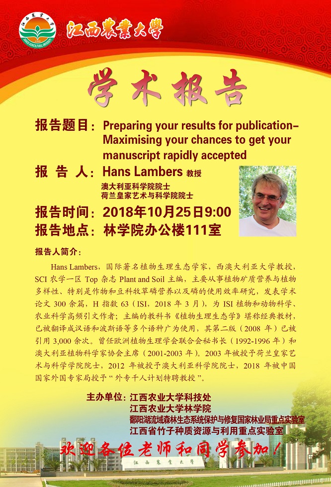 學(xué)術(shù)報告預(yù)告:Preparing your results for publication-Maximising your chances to get your manuscript rapidly accepted