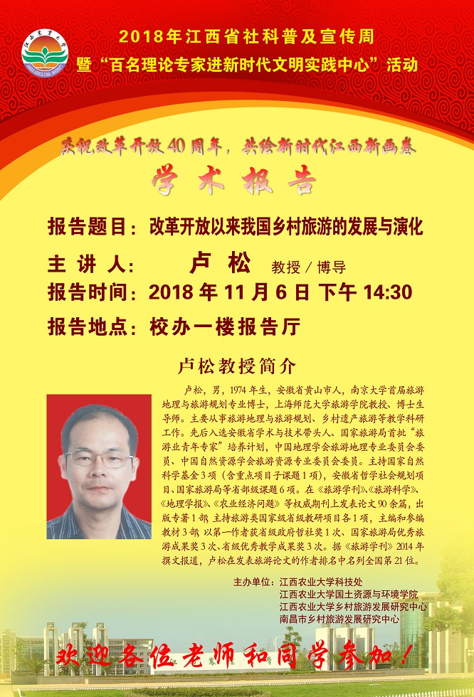 學(xué)術(shù)報(bào)告預(yù)告:改革開(kāi)放以來(lái)我國(guó)鄉(xiāng)村旅游的發(fā)展與演化