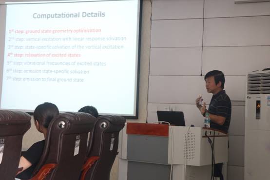 宋杰教授以《Theoretical Calculations of Absorption and Emission Spectra》為題作了精彩的學(xué)術(shù)報(bào)告。報(bào)告介紹了其領(lǐng)銜的研究團(tuán)隊(duì)利用計(jì)算化學(xué)手段,研究分子吸收光譜和發(fā)射光譜的新進(jìn)展,以及在林產(chǎn)資源利用中的應(yīng)用。林學(xué)院及理學(xué)院30余名師生聆聽了報(bào)告。