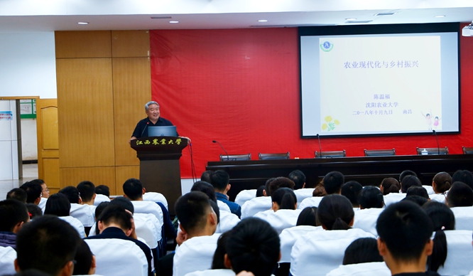 10月9日下午,中國工程院院士、沈陽農業大學教授、博士生導師陳溫福為農學院農學新生作題為《農業現代化與鄉村振興》的學術報告。副校長賀浩華及農學院教師代表參加報告會,副校長黃英金主持會議。