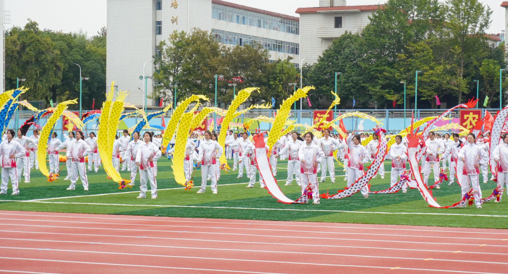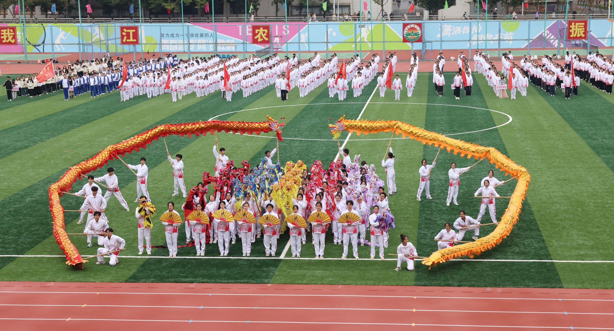 開幕式上,國旗儀仗隊、軍樂團、裁判員方陣、15個學院方陣依次經過主席臺,他們步伐鏗鏘、口號嘹亮,展現了我校師生良好的精神風貌。軍體部羅偉藝老師、連易超同學分別代表裁判員、運動員宣誓。千名新生進行廣播體操比賽,擴胸、轉體、伸展、跳躍,洋溢著青春與活力。中華舞龍表演《龍騰武躍》將傳統與現代巧妙融合,身姿矯健剛勁、動作鏗鏘有力,將開幕式推向高潮。